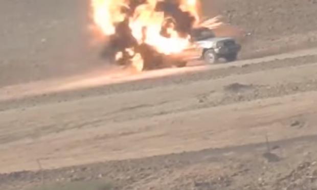 Δείτε βολή αντιαρματικού πυραύλου εναντίον οχήματος του σαουδαραβικού Στρατού το οποίο και κατέστρεψε ολοσχερώς.