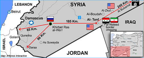 Η περιοχή του Khirbet Ras Al-Waar βρίσκεται 50 χιλιόμετρα από τη Δαμασκό, 85 χιλιόμετρα από τα κεντρικά υψώματα του Γκολάν και 110 χιλιόμετρα από το νότιο Γκολάν, κοντά στην έδρα της Αμερικανικής και Ιορδανικής ειδικής δύναμης στο al-Tanf, η οποία ελέγχει το εσωτερικό της Συρίας και της Ιορδανίας αλλά και του Ιράκ .