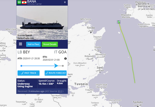 Ο εξειδικευμένος ιστότοπος Marine Traffic, που παρακολουθεί όλα τα πλοία σε πραγματικό χρόνο, ανέφερε ότι το Bana έπλεε χθες το απόγευμα στα ανοιχτά της Σικελίας.