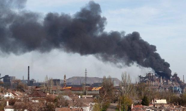 Σήμερα πρωί της Τρίτης, 26 Απριλίου, παρατηρήθηκε μαύρος καπνός πάνω από το εργοστάσιο Azovstal στη Μαριούπολη.