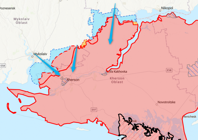 Ο σύμβουλος του επικεφαλής της ΕΠ σε μια από τις εκπομπές του σημείωσε την άβολη θέση της Χερσώνας στη δεξιά όχθη του Δνείπερου, κατά μήκος της οποίας θα προελάσει η AFU.