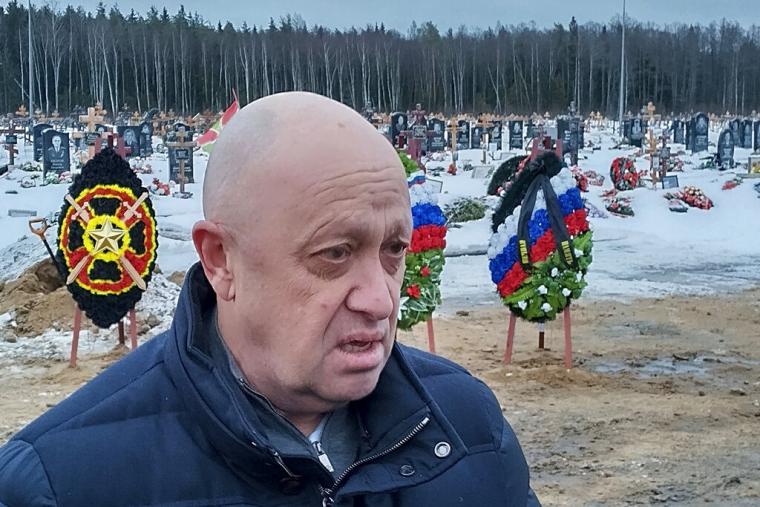 Ο επικεφαλής της Wagner Γεβγκένι Πριγκόζιν στην κηδεία μισθοφόρου της ομάδας που σκοτώθηκε στην Ουκρανία στο νεκροταφείο Beloostrovskoye έξω από την Αγία Πετρούπολη, στις 24 Δεκεμβρίου, 2022