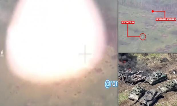Στρατιώτες της Ρωσίας γεμίζουν άρματα μάχης με εκρηκτικά και τα οδηγούν με τηλεχειρισμό εξ αποστάσεως πάνω στις ουκρανικές δυνάμεις, όπου εκρήγνυνται, προκειμένου να προκαλέσουν πολύ μεγάλες απώλειες στους αντιπάλους τους