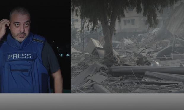 Ο ρεπόρτερ του βρετανικού δικτύου Ρούσντι Αμπού Αλούφ μιλούσε με την παρουσιάστρια Μαριάμ Μοσίρι την ώρα που ακούστηκε ο ήχος μιας δυνατής έκρηξης. Σύμφωνα με το tweet της παρουσιάστριας, η κρότος προήλθε από ένα από τα ισραηλινά πυραυλικά πλήγματα σε κοντινή περιοχή.