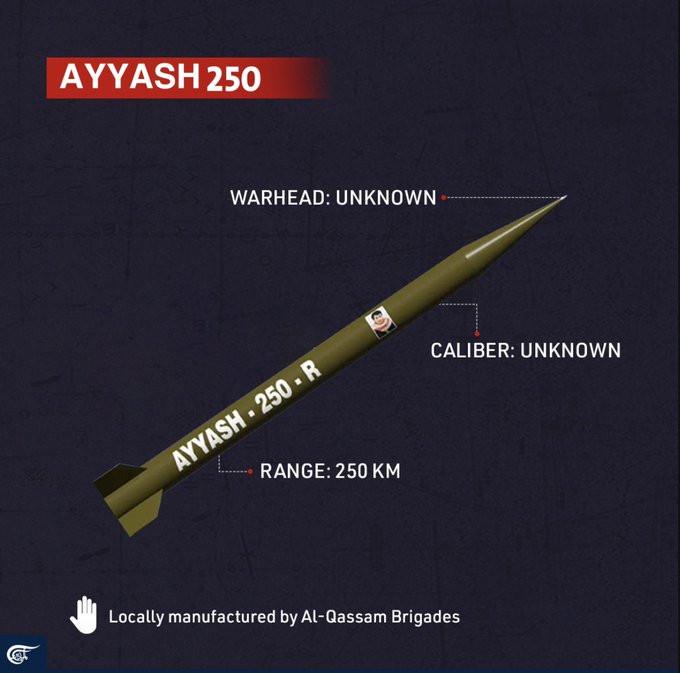 Σύμφωνα με παλαιστινιακές πηγές, η ένοπλη πτέρυγα της Χαμάς, Ταξιαρχίες Αλ Κασάμ, εκτόξευσε έναν πύραυλο Ayash-250 προς το Εϊλάτ. Ο πύραυλος φαίνεται ότι έχει βεληνεκές 250 χιλιομέτρων.