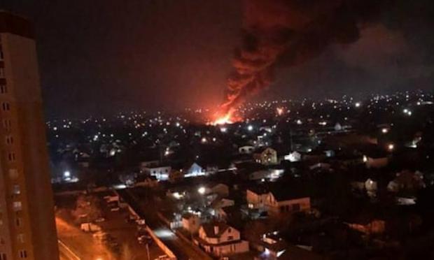 Αρχικά ο δήμος του Κιέβου ανακοίνωσε πως είχε αναλάβει δράση η αντιαεροπορική άμυνα καλώντας τους κατοίκους να παραμείνουν σε καταφύγια.