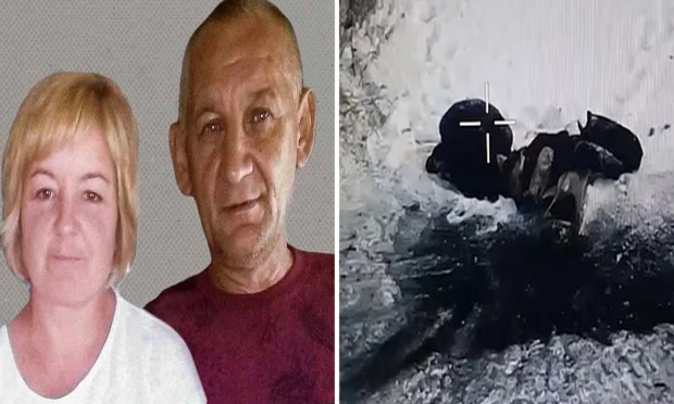 Ένα παντρεμένο ζευγάρι Ουκρανών κείτονται παγωμένο στο χιόνι. Προηγουμένως, το ζευγάρι προσπάθησε να εγκαταλείψει το κατεχόμενο χωριό τους όταν έγιναν στόχος ρωσικών drones που τους σκότωσαν τον έναν μετά τον άλλον.