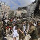 Εθελοντές και διασώστες προσπαθούν να εντοπίσουν επιζώντες στα συντρίμμια του παιδιατρικού νοσοκομείου Οχμαντίτ της Ουκρανίας