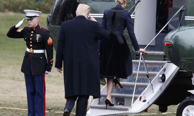 Ο πεζοναύτης στεκόταν προσοχή έξω από το ελικόπτερο προκειμένου να επιβιβαστεί ο πρόεδρος, όμως ο δυνατός αέρας του πήρε το καπέλο. Ο Τραμπ, καθώς προχωρούσε για να ανέβει τη σκάλα, το πρόσεξε και έσκυψε να το μαζέψει. Προχώρησε μάλιστα και το τοποθέτησε στο κεφάλι του πεζοναύτη που όλο αυτό το διάστημα στεκόταν ακίνητος, προσοχή. Ο δυνατός αέρας όμως πέταξε αμέσως πάλι το καπέλο και αυτή τη φορά ο Τραμπ το ξαναμάζεψε μεν, το έδωσε όμως σε έναν από τους συνοδούς του να το τοποθετήσει στον πεζοναύτη.