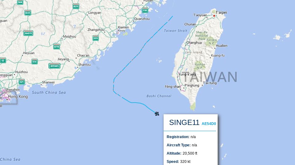 Μια έκθεση της Πέμπτης που δημοσιεύθηκε από το υπουργείο άμυνας της Ταϊβάν ανακοίνωσε ότι το αεροσκάφος των ΗΠΑ ταξίδεψε κατά μήκος της «ενδιάμεσης γραμμής» που χωρίζει τα χωρικά ύδατα της ηπειρωτικής Κίνας από εκείνα της Ταϊβάν στις 11 π.μ. τοπική ώρα μετά την αναχώρηση του από την αεροπορική βάση Kadena στην Οκινάουα της Ιαπωνίας.