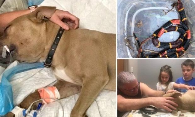 Ο Δίας, όπως ήταν το όνομα του μόλις 8 μηνών πίτμπουλ, πέθανε, αφού τα έβαλε με εξαιρετικά δηλητηριώδες και θανατηφόρο φίδι, που απειλούσε τους δύο μικρούς γιους της οικογένειας στον κήπο του σπιτιού της.