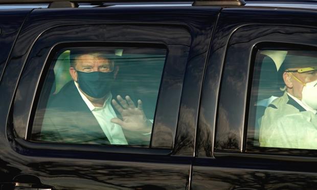 Το απόγευμα της Κυριακής (ξημερώματα Δευτέρας για την Ελλάδα) ο Αμερικανός Πρόεδρος επιβιβάστηκε σε ένα SUV για να χαιρετήσει και να ευχαριστήσει τους υποστηρικτές που έχουν συγκεντρωθεί έξω από το νοσοκομείου οπού νοσηλεύεται με κορωνοϊό. Η ιατρική ομάδα του είχε επιβεβαιώσει ότι το επίπεδο οξυγόνου στο αίμα του μειώθηκε ξαφνικά δύο φορές τις τελευταίες ημέρες.