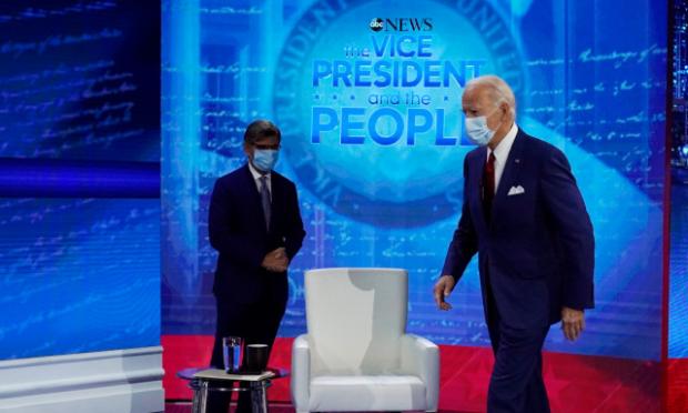 «Τι έχει κάνει; Τίποτα. Συνεχίζει πάντα να μη φοράει μάσκα», είπε το πρώην δεξί χέρι του Μπαράκ Ομπάμα στο πλατό του τηλεοπτικού δικτύου ABC απαντώντας σε ερωτήσεις ψηφοφόρων κατά τη διάρκεια συγκέντρωσης σε κλειστό χώρο που αναμεταδιδόταν απευθείας, ενώ την ίδια ώρα ο αντίπαλός του έκανε το ίδιο μπροστά στις κάμερες ανταγωνιστικού τηλεοπτικού δικτύου.