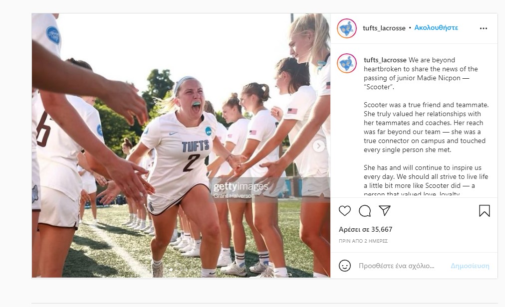 Σοκαριστικό θάνατο είχε η 20χρονη παίκτρια του Λακρός στο Πανεπιστήμιο Tufts στη Βοστόνη των ΗΠΑ, Μάντλιν Νίκπον, που πέθανε την περασμένη Παρασκευή (15/10) σε φιλανθρωπικό διαγωνισμό ταχυφαγείας χοτ ντογκ, από πνιγμό! Η άτυχη κοπέλα μεταφέρθηκε εσπευσμένα σε νοσοκομείο, όπου έγιναν προσπάθειες από τους γιατρούς να την επαναφέρουν στη ζωή, αλλά αυτό δεν κατέστη εφικτό.