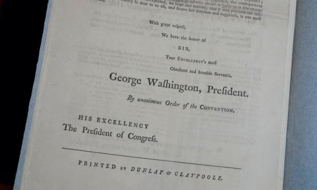Ένα εξαιρετικά σπάνιο πρωτότυπο αντίγραφο του Συντάγματος των Ηνωμένων Πολιτειών του 1787, που υπολογίζεται σε 20 έως 30 εκατομμύρια δολάρια, πρόκειται να δημοπρατηθεί τον Δεκέμβριο στη Νέα Υόρκη.