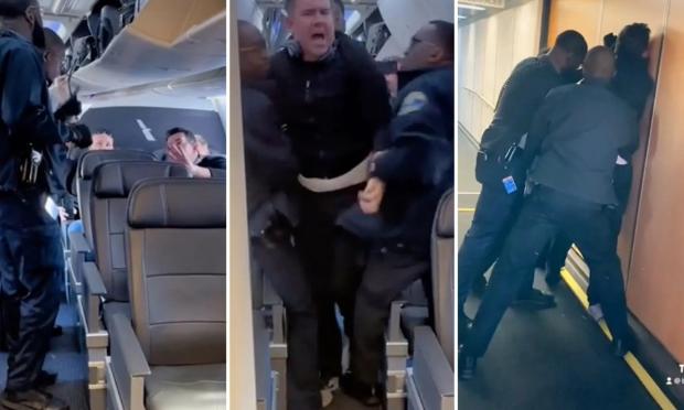 Οι αστυνομικοί προσπαθούν να περάσουν στον άνδρα χειροπέδες στο διάδρομο, αρπάζοντάς τον τελικά βίαια, καθώς φωνάζει «σταματήστε». Αφού βγήκαν έξω από το αεροπλάνο, οι αστυνομικοί σπρώχνουν τον άνδρα για να του περάσουν χειροπέδες καθώς κλαίει και πέφτει στο πάτωμα, χάνοντας ένα αθλητικό παπούτσι.