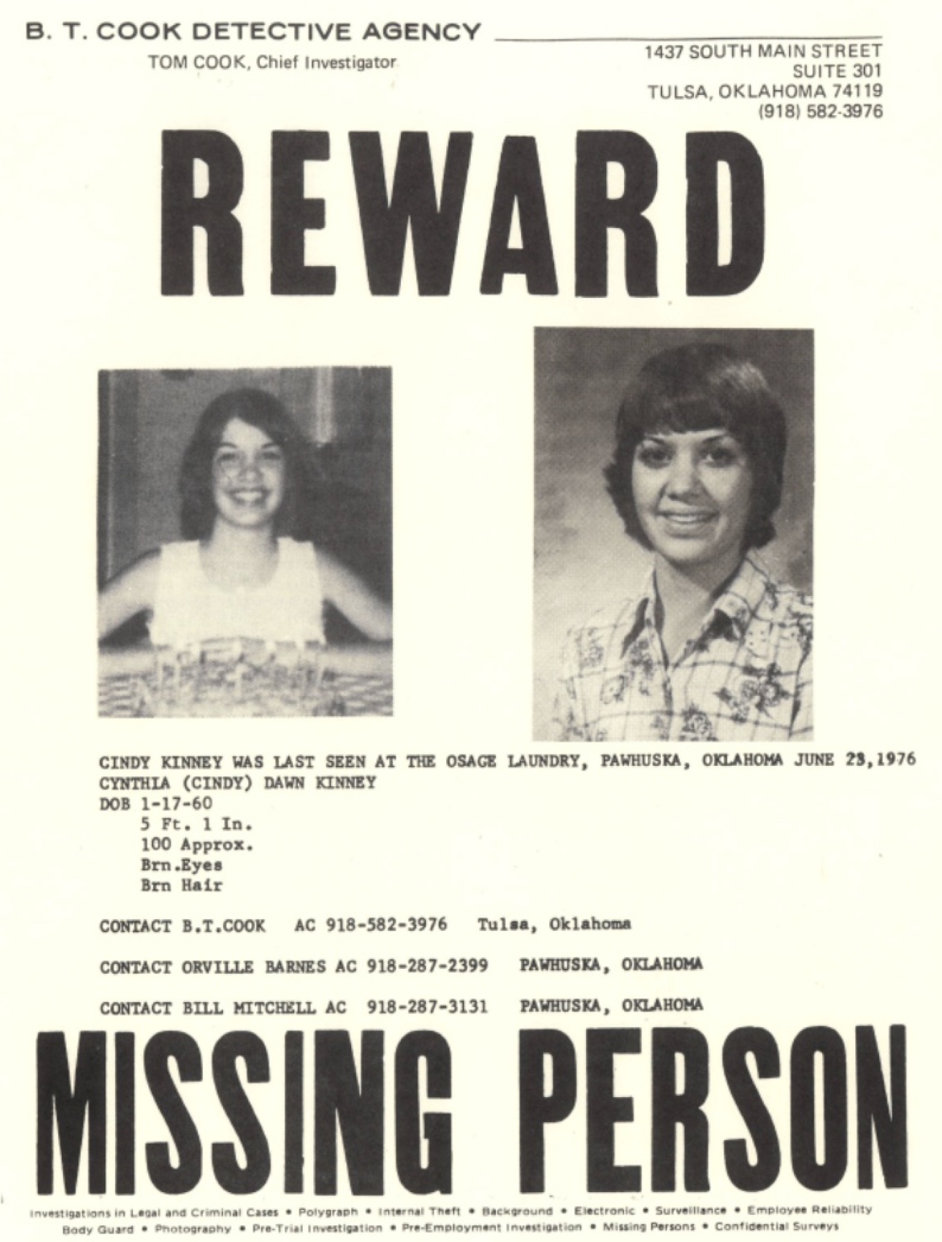 Όταν η 16χρονη Σίνθια Ντον Κίνεϊ εξαφανίστηκε από ένα πλυντήριο αυτοεξυπηρέτησης στην πόλη Παγούσκα της Οκλαχόμα στις 23 Ιουνίου του 1976, οι Αρχές ξεκίνησαν μια μεγάλη επιχείρηση για τον εντοπισμό της έφηβης τσιρλίντερ που τα αγαπημένα της πρόσωπα φώναζαν «Σίντι». Η κοπέλα δεν βρέθηκε ποτέ, ωστόσο ο Σερίφης της κομητείας Όσατζ ανακοίνωσε πριν λίγες μέρες ότι υπάρχουν σοβαρά στοιχεία που συνδέουν τον Ρέιντερ όχι μόνο με αυτήν την υπόθεση, αλλά και με μια άλλη δολοφονία γυναίκας στο Μιζούρι.