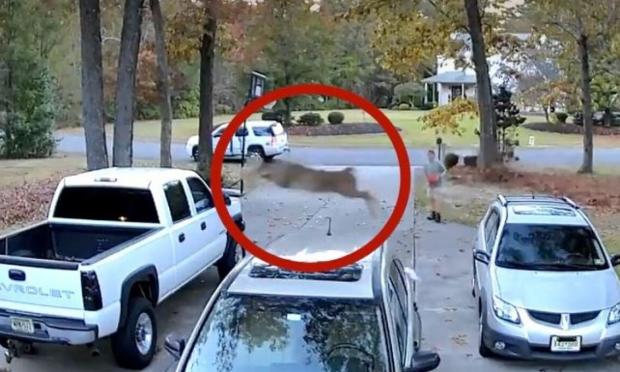 Τη στιγμή που ένα ελάφι πηδάει πάνω από δύο αυτοκίνητα και προσγειώνεται πάνω σε ένα τρίτο όχημα κατέγραψε η κάμερα ενός σπιτιού στο Νιου Τζέρσεϊ των ΗΠΑ.