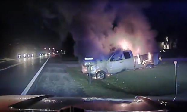 «Υπήρχαν φλόγες στην περιοχή της καρότσας του φορτηγού και στη συνέχεια ο χώρος του κινητήρα είχε μόλις αρχίσει να παίρνει φωτιά» περιέγραψε ο αστυνομικός που έσωσε την οδηγό.