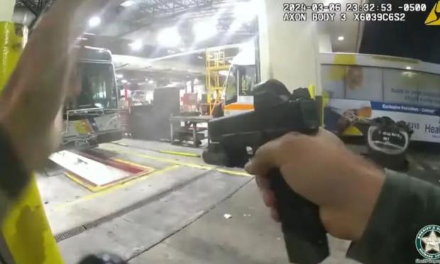 Στο βίντεο φαίνονται οι αστυνομικοί να πλησιάζουν το λεωφορείο στο οποίο είχε ταμπουρωθεί ο 59χρονος και να ανοίγουν πυρ αφού δέχονται βροχή από σφαίρες.