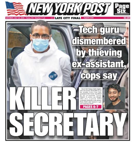 Πηγές είπαν στο The Post εκείνη την εποχή οτι ο Χάσπιλ φέρεται να είχε χρησιμοποιήσει τις πιστωτικές κάρτες του Σαλέχ για να πληρώσει μετακινήσεις και να αγοράσει προμήθειες για να καθαρίσει τα ίχνη της δολοφονίας. Οι εισαγγελείς είπαν ότι ο Χάσπιλ, φορώντας μάσκα, χτύπησε τον Σάλεχ με ένα tazer, τον μαχαίρωσε και μετά διαμέλισε το σώμα μια μέρα αργότερα, κόβοντας το κεφάλι του θύματος.