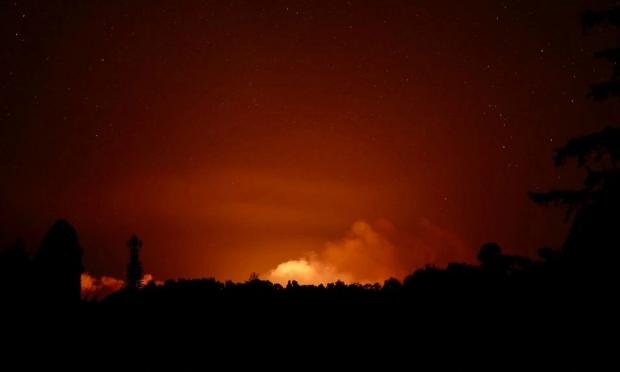 Το ηφαίστειο Κιλαουέα της Χαβάης εξερράγη νωρίς το πρωί της Δευτέρας με τη λάβα που ανάβλυζε από το έδαφος να βάφει σε πορτοκαλί απόκοσμο χρώμα τον ουρανό.