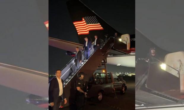 Συγκεκριμένα, η αναπληρώτρια διευθύντρια επικοινωνίας του Τραμπ, Μάργκο Μάρτιν, δημοσίευσε ένα βίντεο που τον δείχνει να κατεβαίνει τα σκαλιά αεροπλάνου τα ξημερώματα της Κυριακής (14/7).