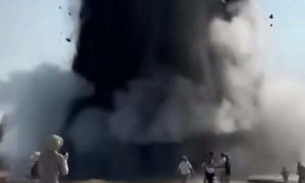 Τρομακτικά πλάνα δείχνουν περίπου δώδεκα τουρίστες να τρέχουν κατά μήκος του πεζόδρομου που οδηγεί στις ιαματικές πισίνες. Μερικοί ουρλιάζουν καθώς μεγάλα κομμάτια βράχου εκτοξεύονται προς όλες τις κατευθύνσεις.