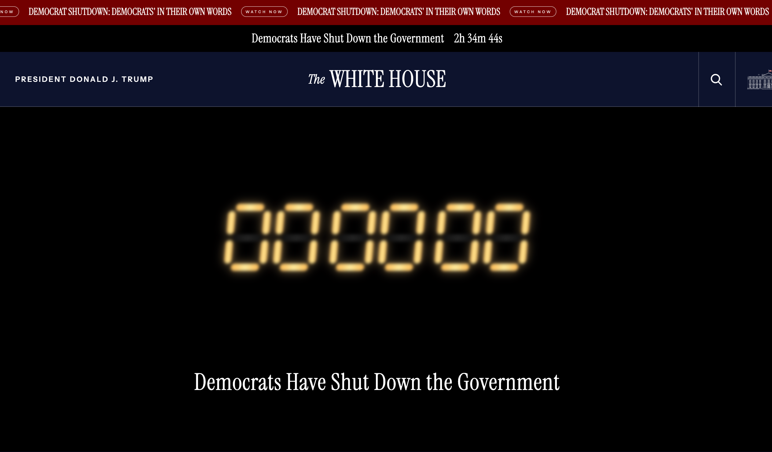 Λευκός Οίκος: Μήνυμα-καταπέλτης «Οι Δημοκρατικοί έκλεισαν την κυβέρνηση» στο site της Προεδρίας