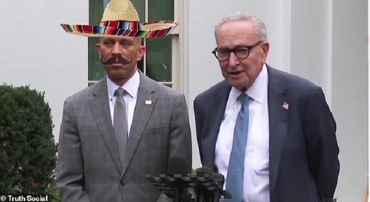 Στο πλαίσιο της σύγκρουσης με τους Δημοκρατικούς για το «κλείσιμο» της κυβέρνησης, ο Τραμπ δημοσίευσε τη Δευτέρα (29/9) ένα βίντεο στον λογαριασμό του στο Truth Social, στο οποίο απεικονίζεται ο Τζέφρις να μιλάει έξω από τον Λευκό Οίκο με μουστάκι και σομπρέρο, ενώ ακούγεται μουσική Mαριάτσι στο βάθος. Ο Τζέφρις είναι μαύρος και η μητέρα του έχει ρίζες από το Πράσινο Ακρωτήριο.