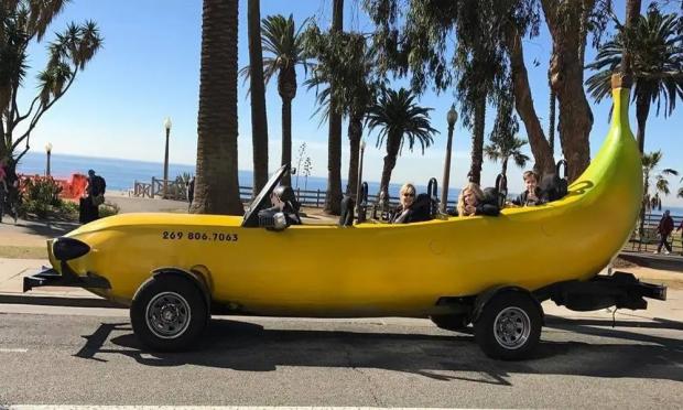 Το Big Banana Car είναι "unconvertible", δηλαδή κάμπριο που δεν κλείνει. Αυτό σημαίνει ότι, αν βρέχει, θα βραχείς. Επίσης, με μήκος 7 μέτρα, το παρκάρισμα είναι κάθε φορά… πρόκληση.