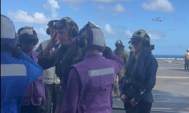 Σε ανάρτηση του Πενταγώνου στην πλατφόρμα Χ, η οποία συνοδεύεται από βίντεο, ο Χέγκσεθ διακρίνεται να χαιρετά αξιωματικούς και μέλη του πληρώματος. Ο αμερικανός υπουργός Άμυνας μετέφερε επίσης τις ευχές του προέδρου των ΗΠΑ Ντόναλντ Τραμπ για την «Ημέρα των Ευχαριστιών».