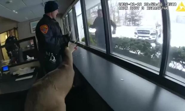 Σε πλάνα από κάμερα σώματος που έδωσε στη δημοσιότητα το Αστυνομικό Τμήμα της Κομητείας Σάφολκ, φαίνονται οι αστυνομικοί να εισέρχονται στην τράπεζα από το σπασμένο παράθυρο και να παλεύουν με το ελάφι, το οποίο αντιστεκόταν στις προσπάθειες ακινητοποίησής του, μέχρι τη στιγμή που κατάφεραν να περάσουν ένα σκοινί γύρω από τα κέρατά του.
