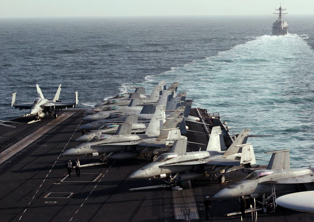 Ομάδες Κρούσης Αεροπλανοφόρων: Τουλάχιστον δύο αεροπλανοφόρα με τις συνοδευτικές τους φρεγάτες και αντιτορπιλικά πλέουν σε στρατηγικά σημεία της Αραβικής Θάλασσας και του Περσικού Κόλπου, δημιουργώντας μια αδιαπέραστη ζώνη ναυτικού αποκλεισμού.