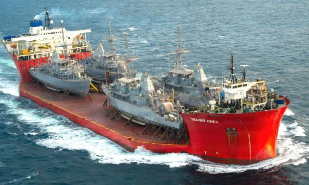 Το αμερικανικό πολεμικό ναυτικό μίσθωσε το πελώριο αυτό πλοίο, το οποίο στις 9 Ιανουαρίου φέτος ξεκίνησε το ταξίδι του από την Μέση Ανατολή στις Ηνωμένες Πολιτείες φορτωμένο με τα τέσσερα θρυλικά ναρκοθηρευτικά Avenger. Πίσω στην πατρίδα τους, τα πλοία αναμένεται να αποσυναρμολογηθούν και να γίνουν σκραπ.