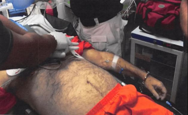 Διασλήνωση: Ο Επστάιν εμφανίζεται διασωληνωμένος με αναπνευστική συσκευή (Ambu), γεγονός που επιβεβαιώνει ότι κατά τη στιγμή της μεταφοράς του δεν ανέπνεε αυτοδύναμα.