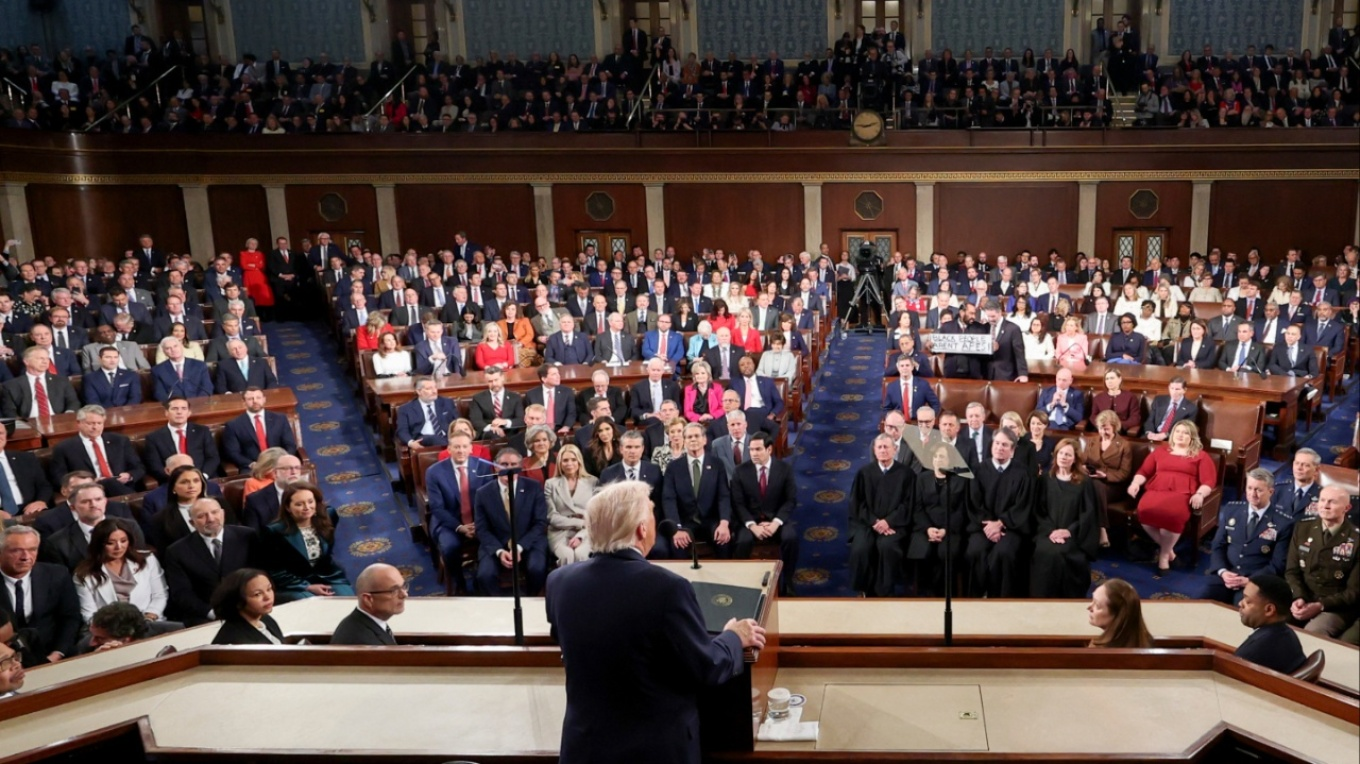 Με τον αέρα του απόλυτου κυρίαρχου και ένα αφήγημα που βασίζεται στην «ισχυρή επιστροφή» των Ηνωμένων Πολιτειών, ο Ντόναλντ Τραμπ εκφώνησε την ετήσια ομιλία του για την Κατάσταση της Ένωσης. Σε μια εμφάνιση που έσπασε κάθε ρεκόρ, διαρκώντας 1 ώρα και 48 λεπτά, ο Αμερικανός πρόεδρος έθεσε ως αιχμή του δόρατος την οικονομία, την αυστηρή μεταναστευτική πολιτική και την άτεγκτη στάση του απέναντι στο Ιράν.