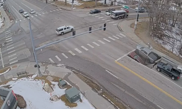 Η στιγμή που η τρύπα «κατάπιε» τα δύο αυτοκίνητα, έξω από το Πανεπιστήμιο της Νεμπράσκα