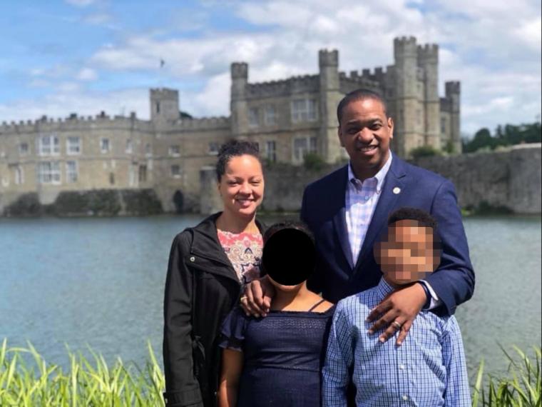O πρώην αντικυβερνήτης της Βιρτζίνια Τζάστιν Φέρφαξ, η σύζυγος του Σερίνα Φέρφαξ και τα δύο τους παιδιά