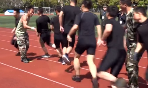 Η εκπαίδευση των Κινέζων πυροσβεστών φαίνεται πως είναι πολύ δύσκολη και κάπως ασυνήθιστη.
