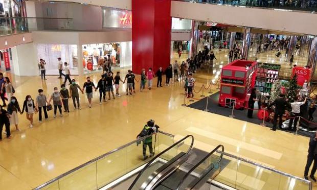 Συγκεκριμένα, μονάδες αντιμετώπισης ταραχών της αστυνομίας εισέβαλαν σε πολλά εμπορικά κέντρα την Κυριακή, ανάμεσά τους και το Citi Plaza, όπου οι διαδηλωτές σχημάτισαν ανθρώπινη αλυσίδα για να απωθήσουν τις δυνάμεις ασφαλείας, ενώ στη συνέχεια σημειώθηκαν συμπλοκές με την αστυνομία στις κυλιόμενες σκάλες.
