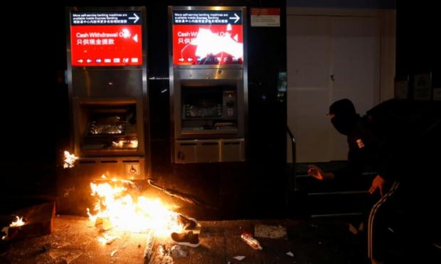 Στη συνοικία Γουαντσάι, όπου είναι συγκεντρωμένα πολλά μπαρ, κάποιοι διαδηλωτές έβαψαν με σπρέι και κατέστρεψαν μηχανήματα αυτόματης ανάληψης χρημάτων σε ένα υποκατάστημα της τράπεζας HSBC με αποτέλεσμα να επέμβουν αστυνομικοί με πολιτική περιβολή και να ψεκάσουν με σπρέι πιπεριού τους συγκεντρωμένους και στη συνέχεια να κάνουν χρήση δακρυγόνων.