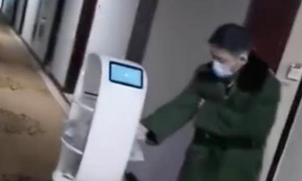 Ρομπότ διανέμουν το φαγητό σε διακόσιους τουρίστες, πολλοί από την πόλη Ουχάν, που ταξίδεψαν αεροπορικώς στην ανατολική Κίνα και φιλοξενούνται σε ξενοδοχείο της πόλης Ουανκγκτσού.