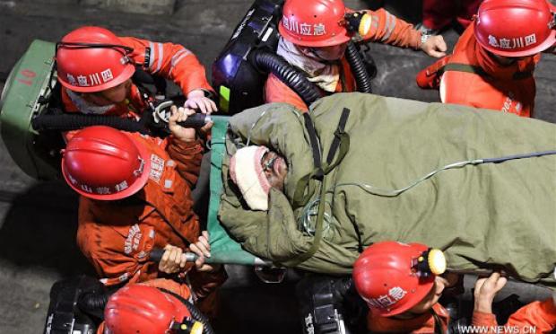 Ο μεταλλωρύχος αυτός ήταν εξαιρετικά αδύναμος, αναφέρει το CCTV στην σελίδα του στο Weibo. Τα σωστικά συνεργεία τύλιξαν τον άνδρα, ο οποίος ανταποκρινόταν ελάχιστα, σε μια κουβέρτα προτού διακομιστεί με ασθενοφόρο στο νοσοκομείο.