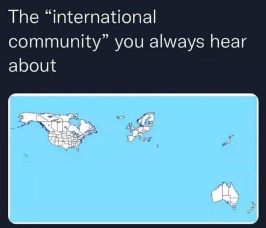 Η ίδια η εικόνα λέει: «Η διεθνής κοινότητα για την οποία ακούς να λέγεται συνέχεια».