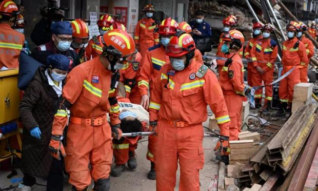 Σήμερα, το εθνικό τηλεοπτικό δίκτυο CCTV έδειξε τις εικόνες ενός ανθρώπου τυλιγμένου με μια χοντρή λευκή κουβέρτα σε ένα φορείο. Είναι ο όγδοος άνθρωπος που ανασύρεται από τα ερείπια του κτιρίου σε διάστημα τριών ημερών.