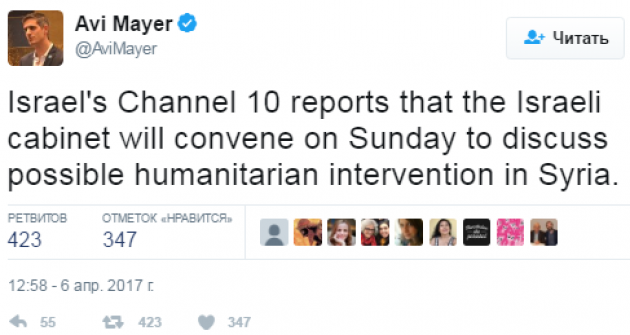 Η κυβέρνηση του Ισραήλ στις 9 Απριλίου πραγματοποίησε μια άκρως μυστική μέχρι τώρα συνάντηση για τις λεπτομέρειες της έναρξης «ανθρωπιστικής επέμβασης» με τις ΗΠΑ στη Συρία, σύμφωνα με το ισραηλινό Κανάλι 10.