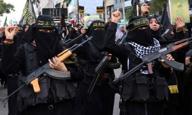 Η οργάνωση των μαχητριών της ταξιαρχίας al-Quds έδειξε το ετοιμοπόλεμό της κατά τη διάρκεια στρατιωτικού τύπου επίδειξης στη λωρίδα της Γάζας.