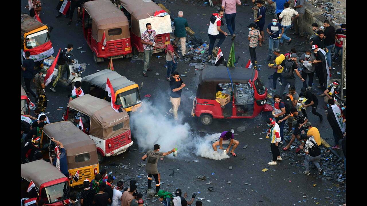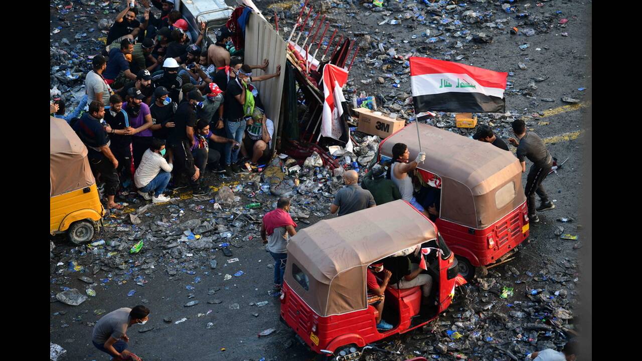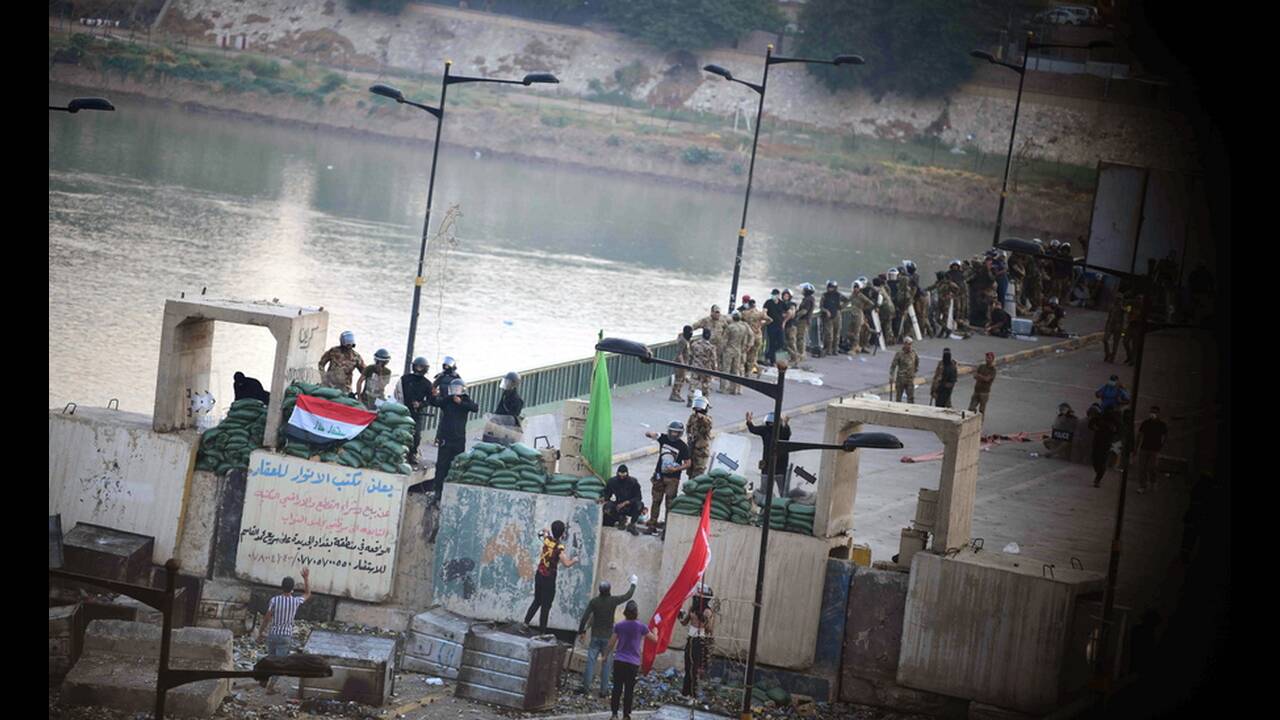 Εκατοντάδες διαδηλωτές παρέμειναν στην πλατεία Ταχρίρ, στο κέντρο της Βαγδάτης το βράδυ.
