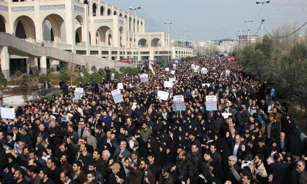 Μετά την μεγάλη προσευχή της Παρασκευής, πλήθος ξεχύθηκε στους κεντρικούς δρόμους της ιρανικής πρωτεύουσας κρατώντας πορτρέτα του διοικητή των Φρουρών της Επανάστασης και φωνάζοντας «Θάνατος στην Αμερική».